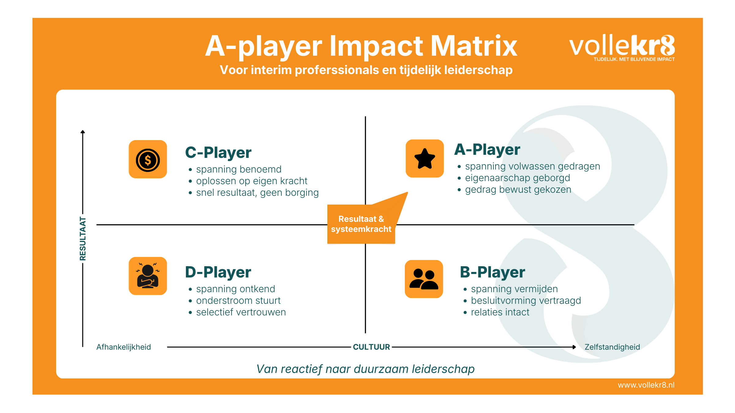 De uitkomst positioneert je in de A-Player Impact Matrix en vormt de basis voor het dagdeel.